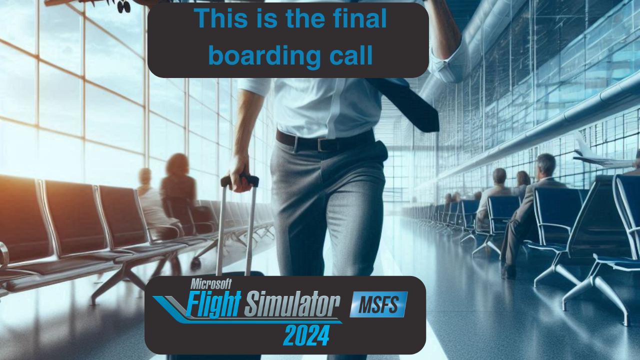 This is your flight attendant speaking. We are now making the final boarding call for our flight to the incredible world of Microsoft Flight Simulator 2024. Please proceed to the gate immediately with your boarding passes and passports ready for validation.