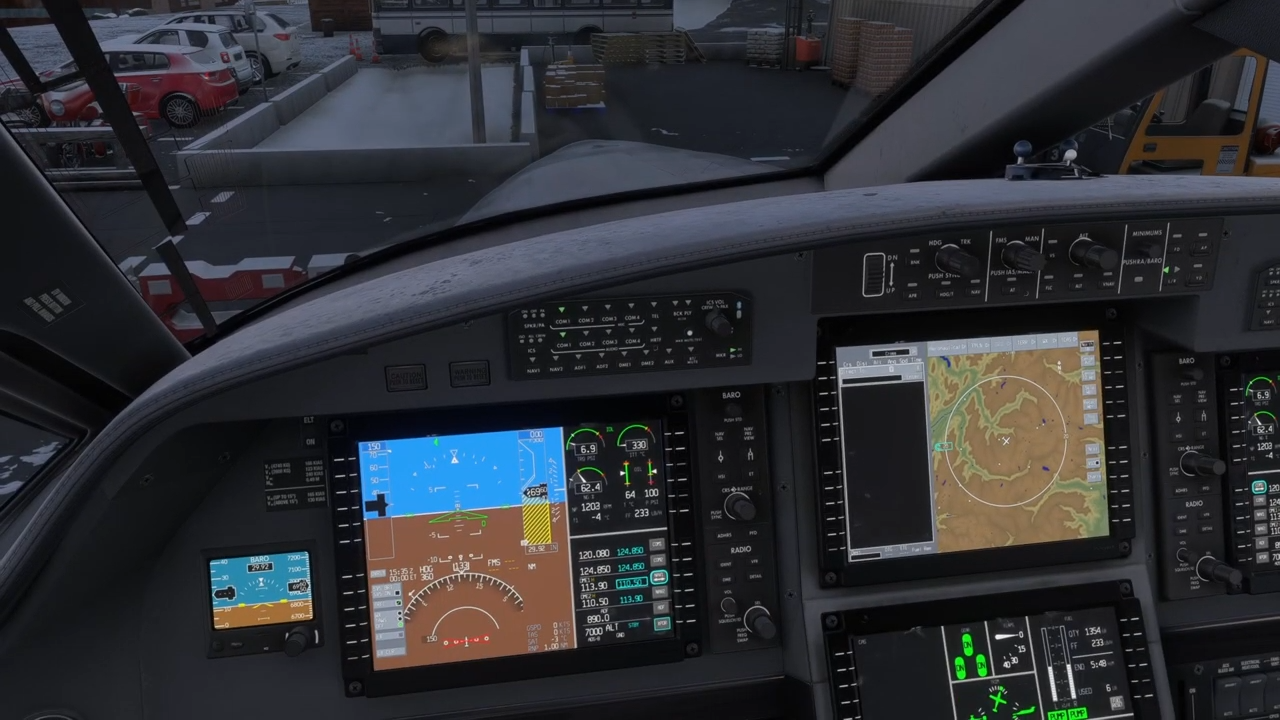 Cold & dark to fully alive. 4 massive Honeywell A displays. The PT6 ready to roar. And a flight deck that feels like a Swiss-built spaceship.